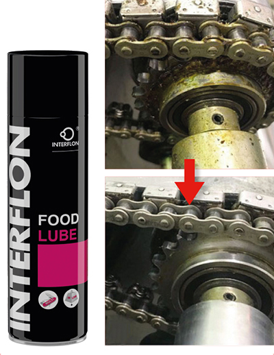 Highly versatile, dry film H1 food grade oil lubricant fortified with Interflon's MicPol® technology. Premium oil lubricant for a multitude of general machine parts lubrication, cable and chain lubrication, and applications in food-stuff environments. Food Lube is a certified H1 oil lubricant to be used in food, beverage or pharmaceutical production where incidental contact can occur. It gives a highly durable, non-staining, dry lubrication film that prevents wear on moving parts. Food Lube is formulated to reduce your maintenance and downtime costs and the number of lubricants currently in use. Treats seized parts and prevents the formation of rust and other corrosives. It’s long-lasting lubrication is resistant to high pressures, water wash-off and will not attract dirt, dust and other abrasives.